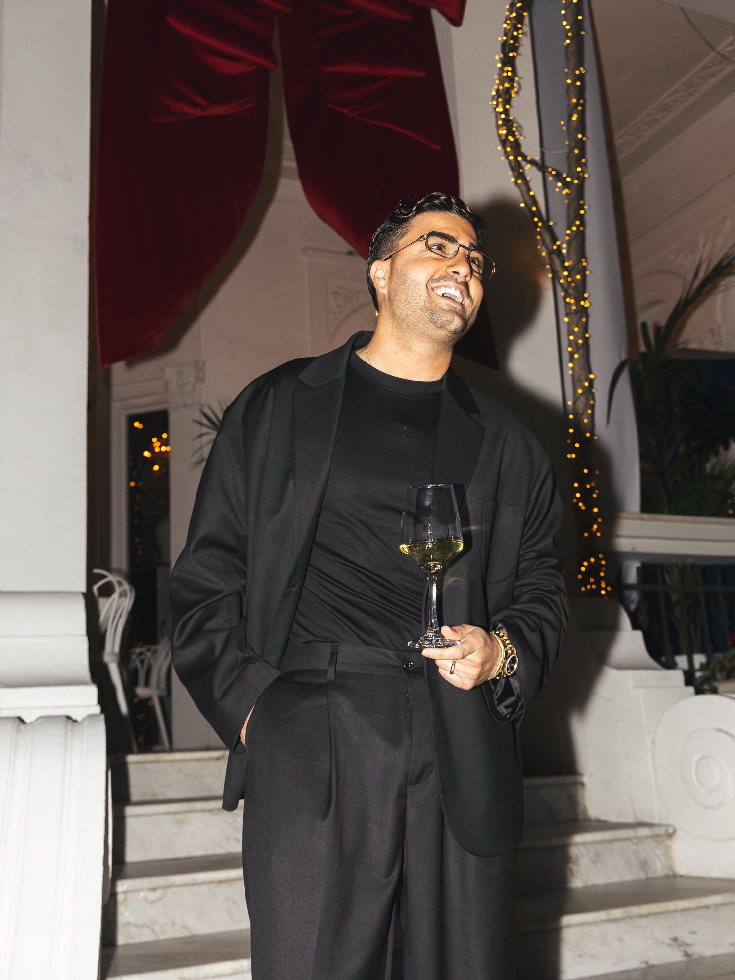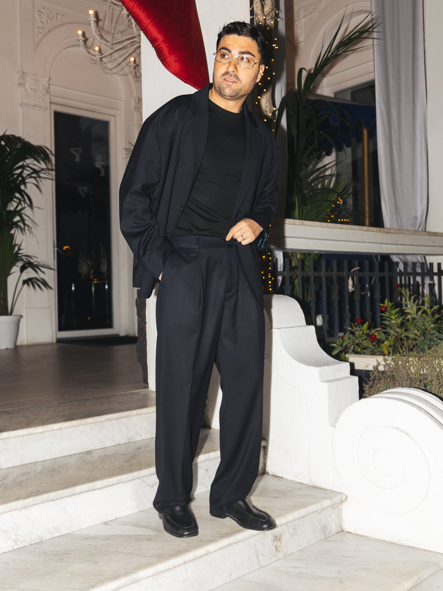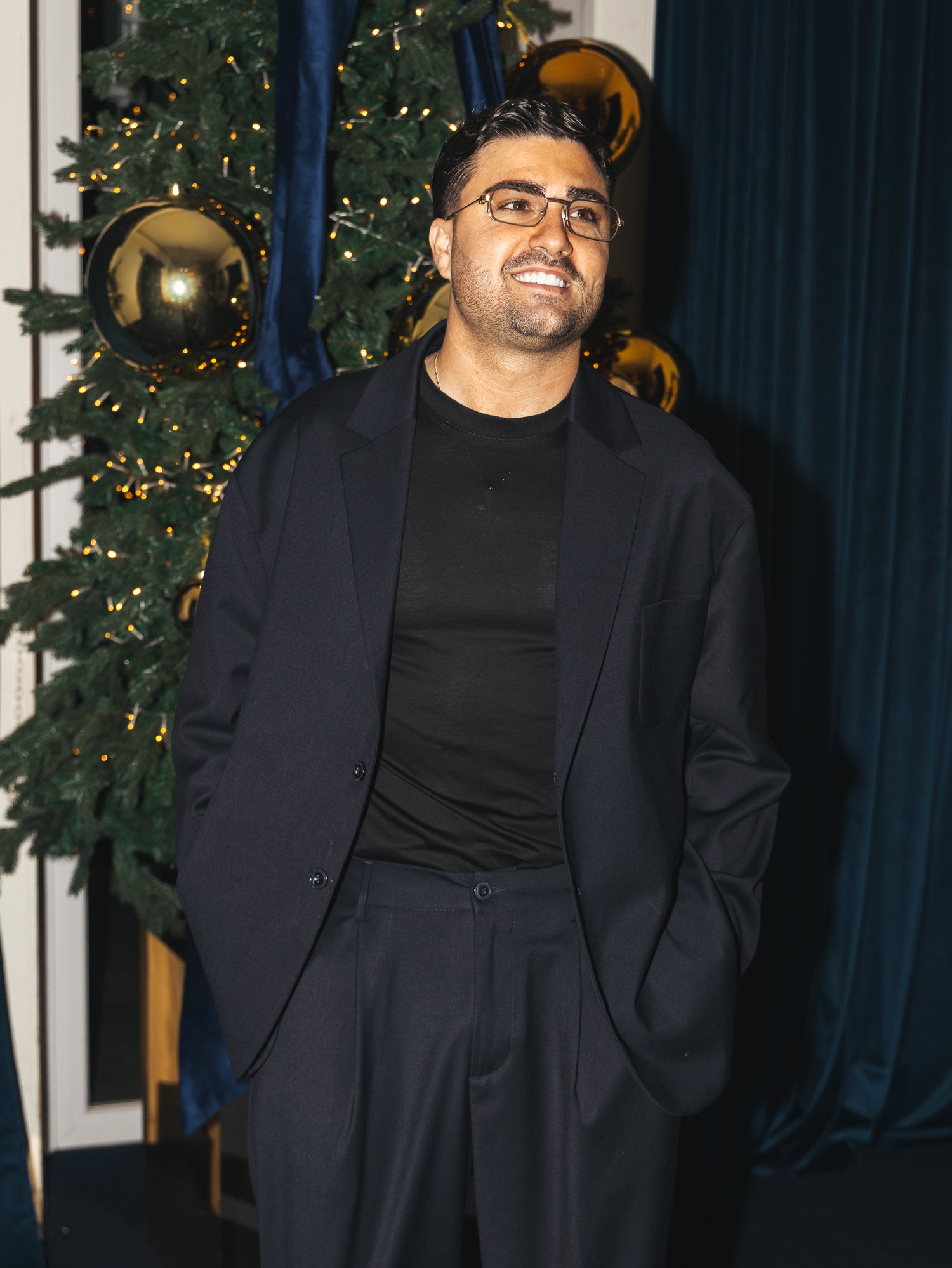 Questo Abito Christmas GèGè è perfetto per le festività natalizie. Realizzato con una giacca over spalla bassa e manica larga, pantaloni eleganti e confortevoli. Ideale per un look raffinato e comodo durante gli eventi natalizi. Sto indossando una taglia 48 sono alto 1.80 e peso 80 kg