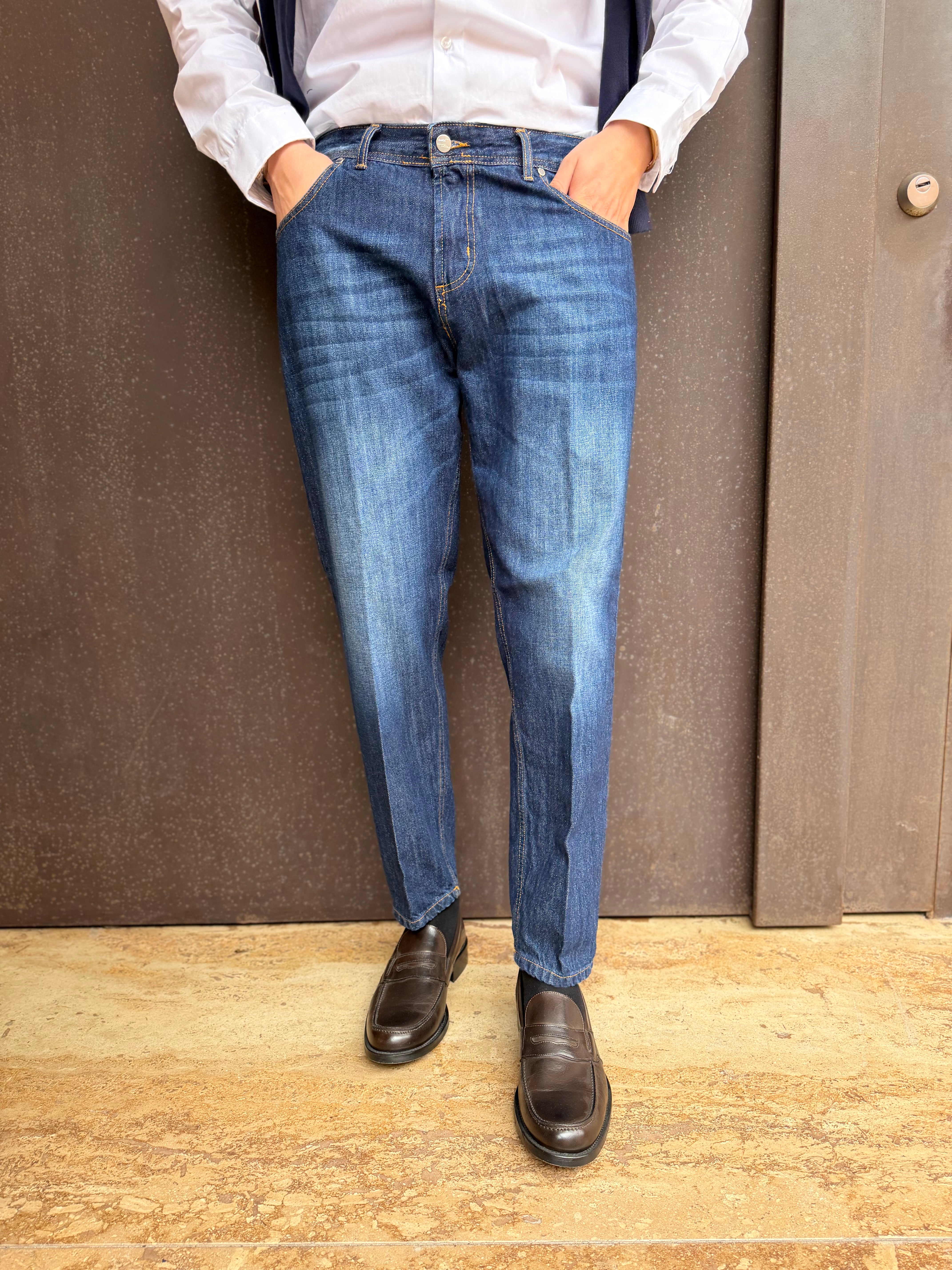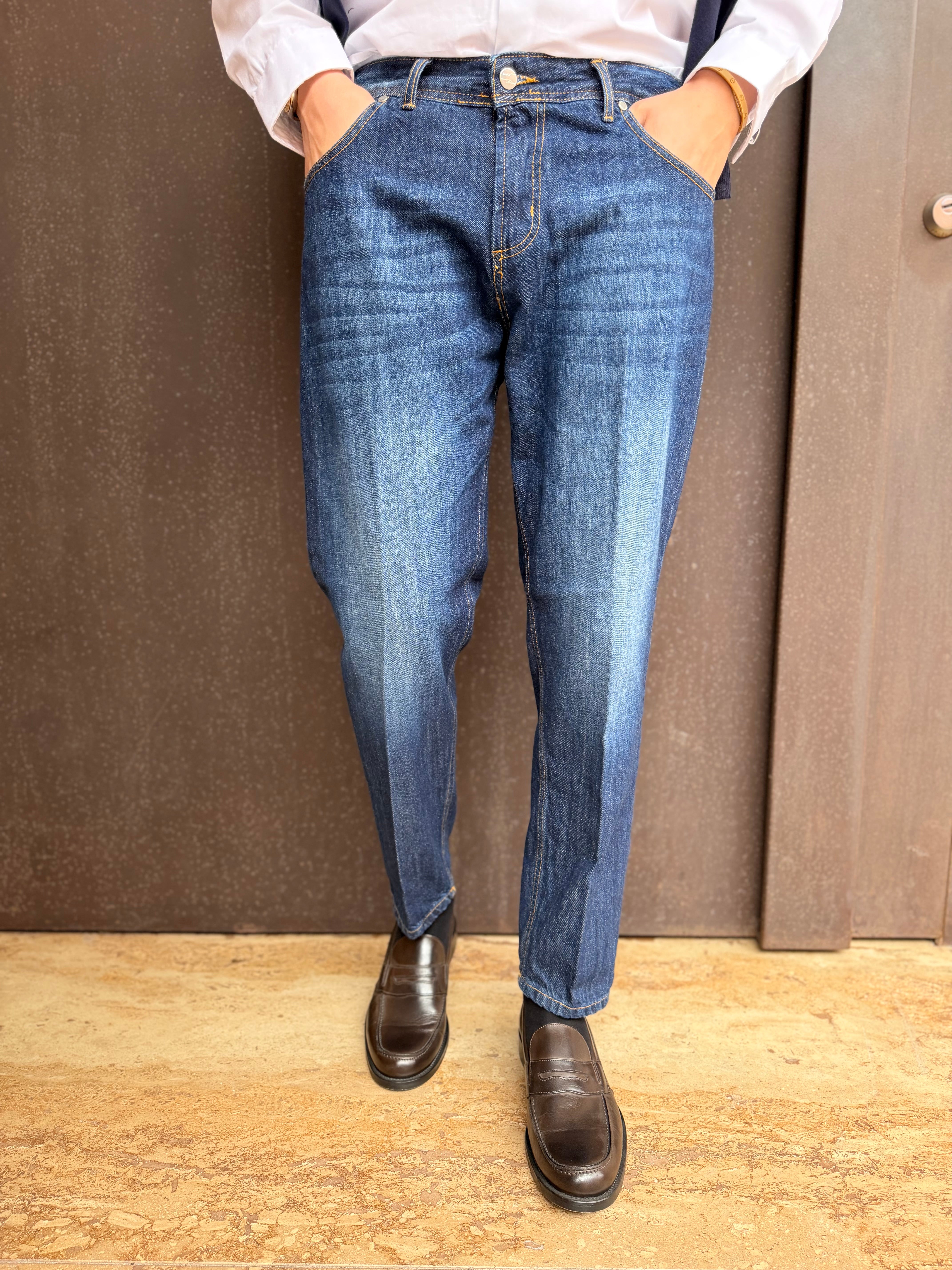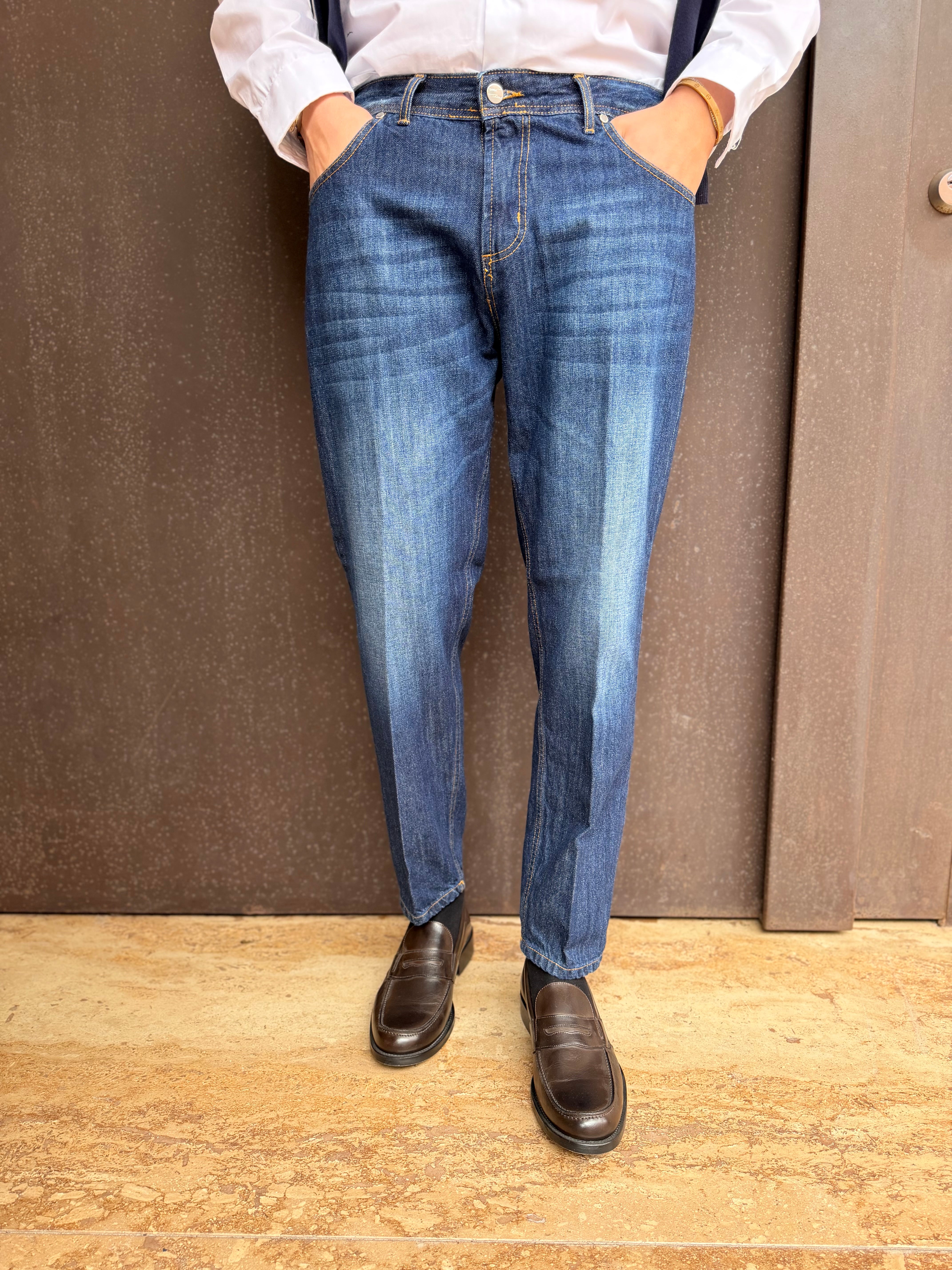 Jeans cinque tasche te la fissa vestibilità perfetta io sto indossando una taglia 50 sono alto 1,80 m e peso 80 kg