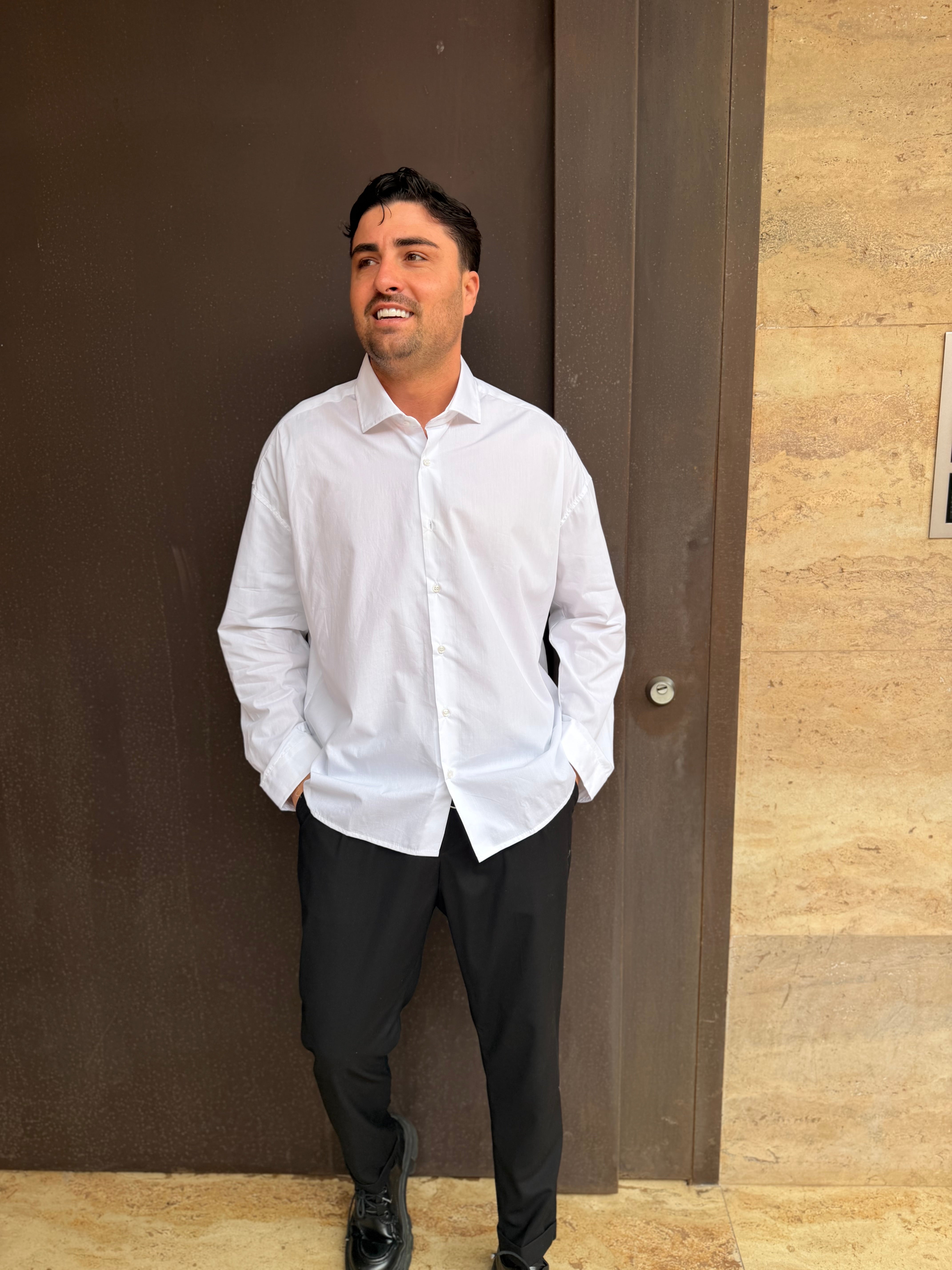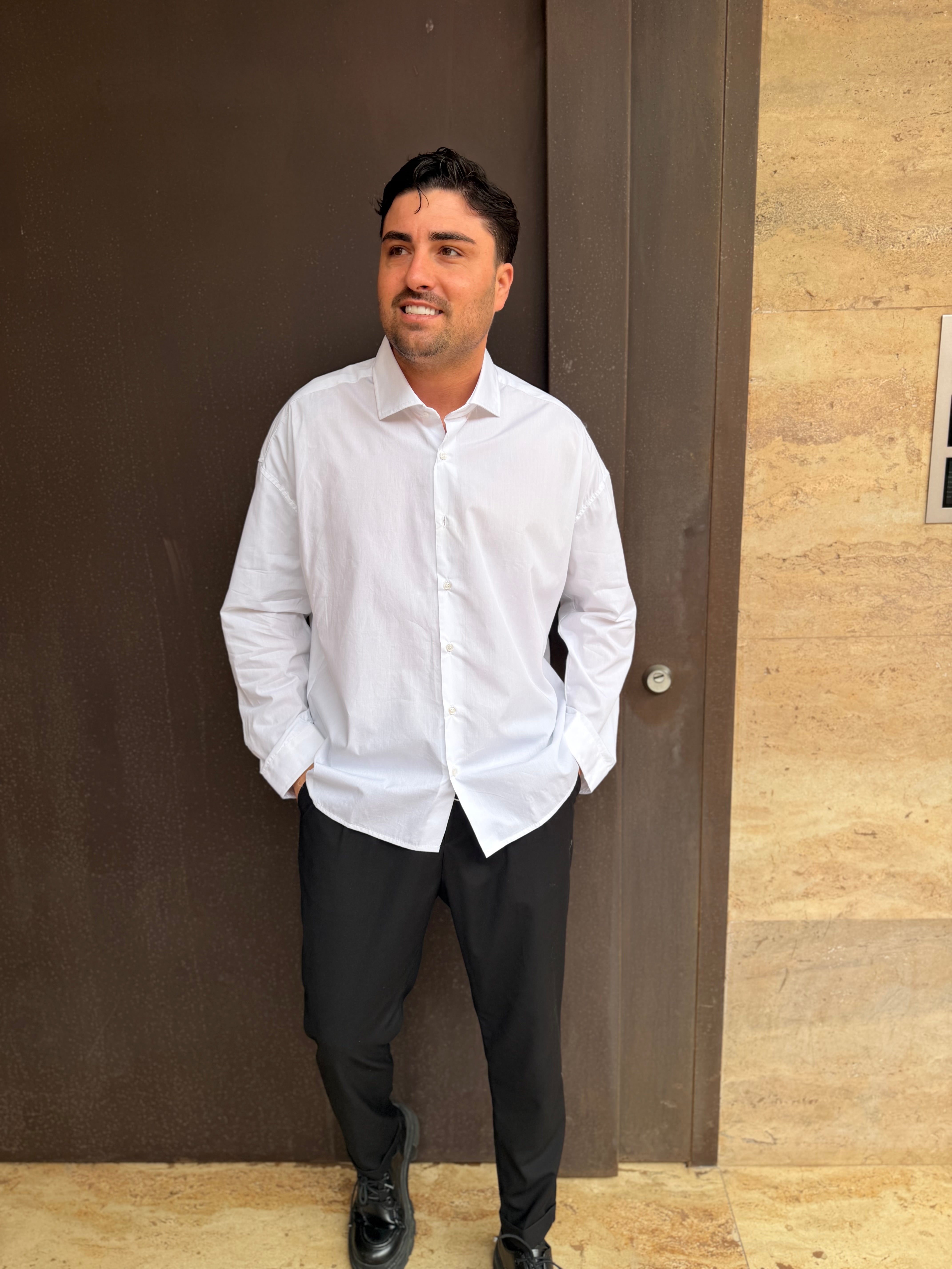 Camicia oversize fit pazzesco io sto indossando una taglia L sono alto 1,80 m per 80 kg