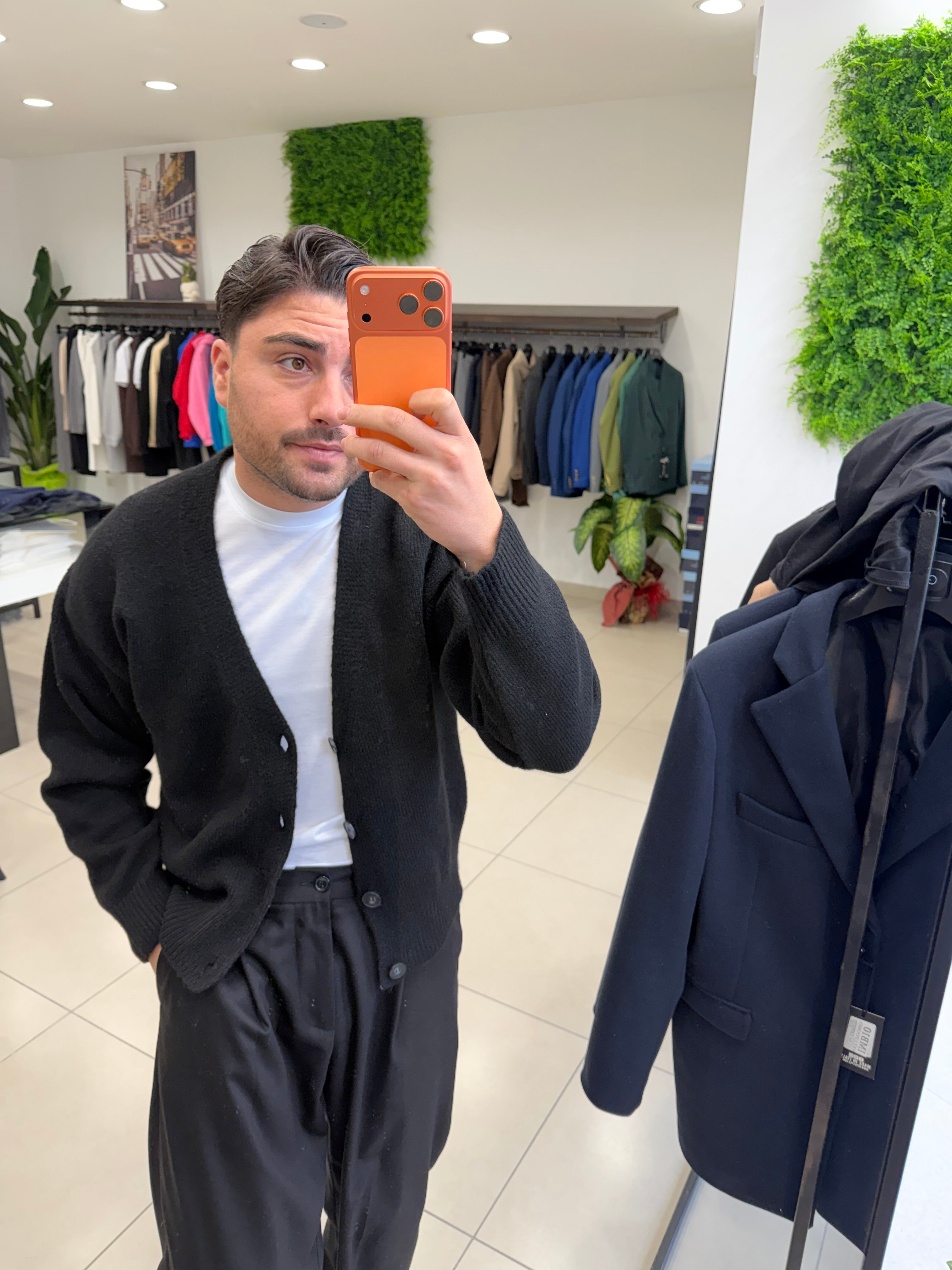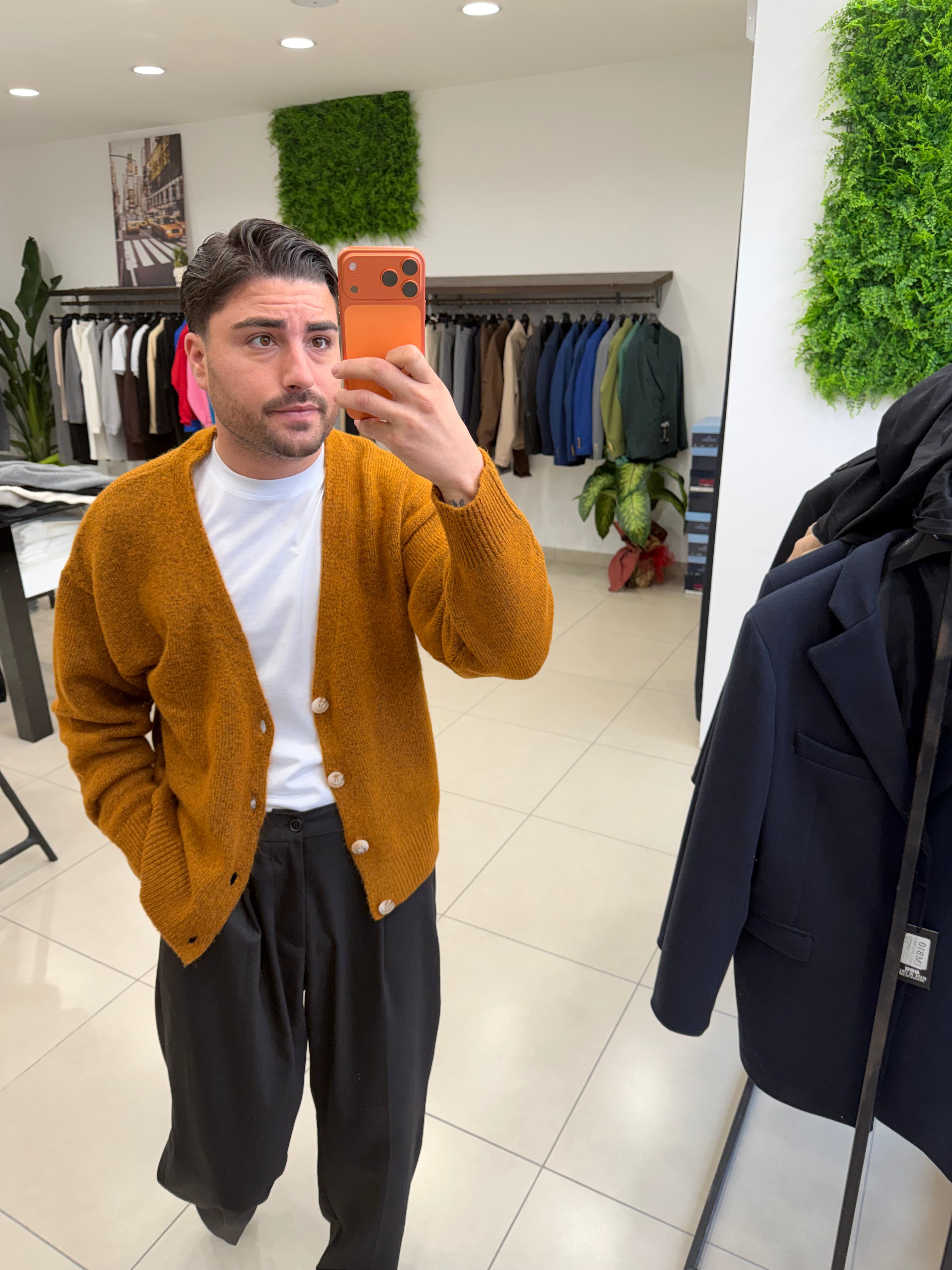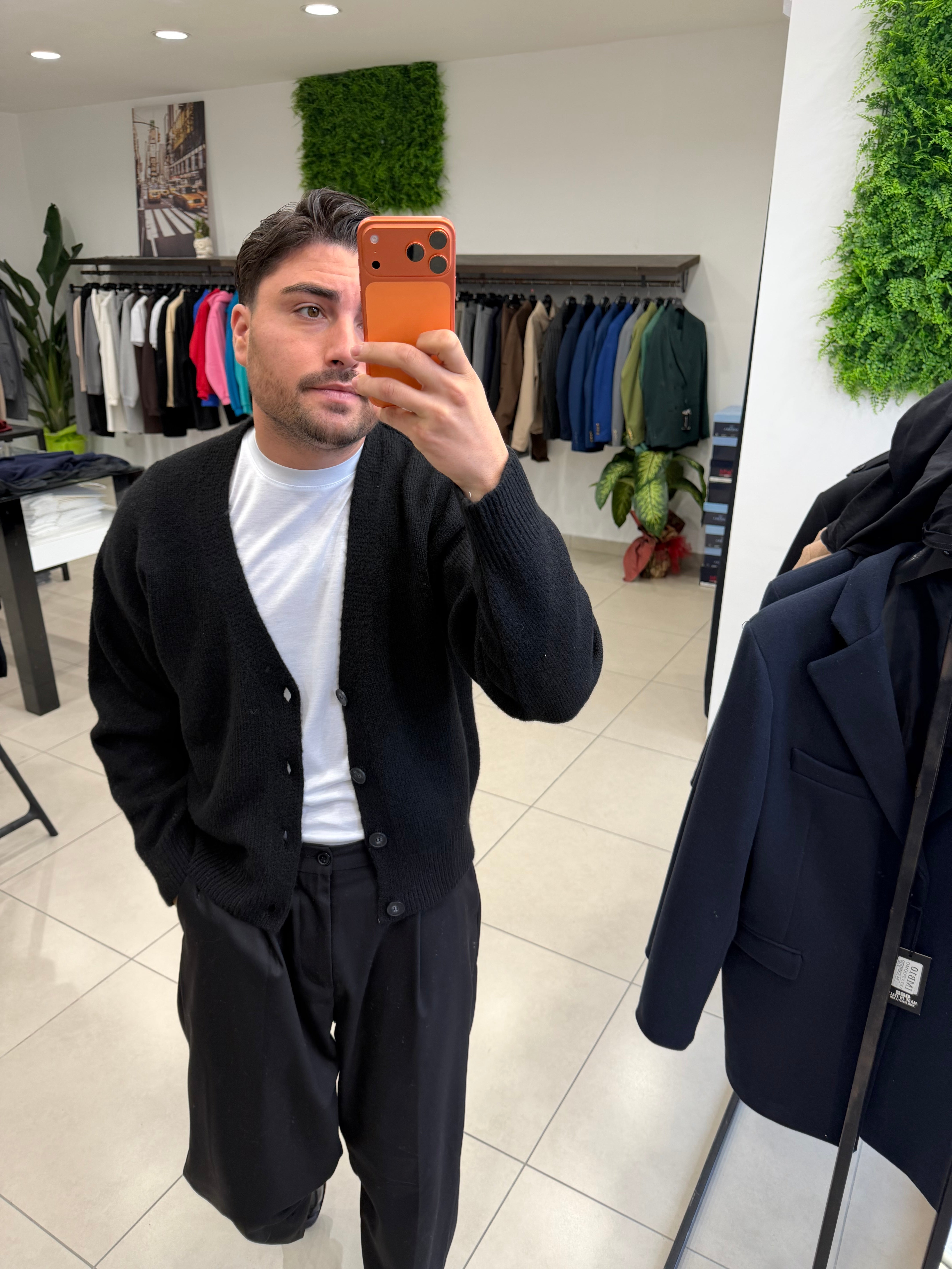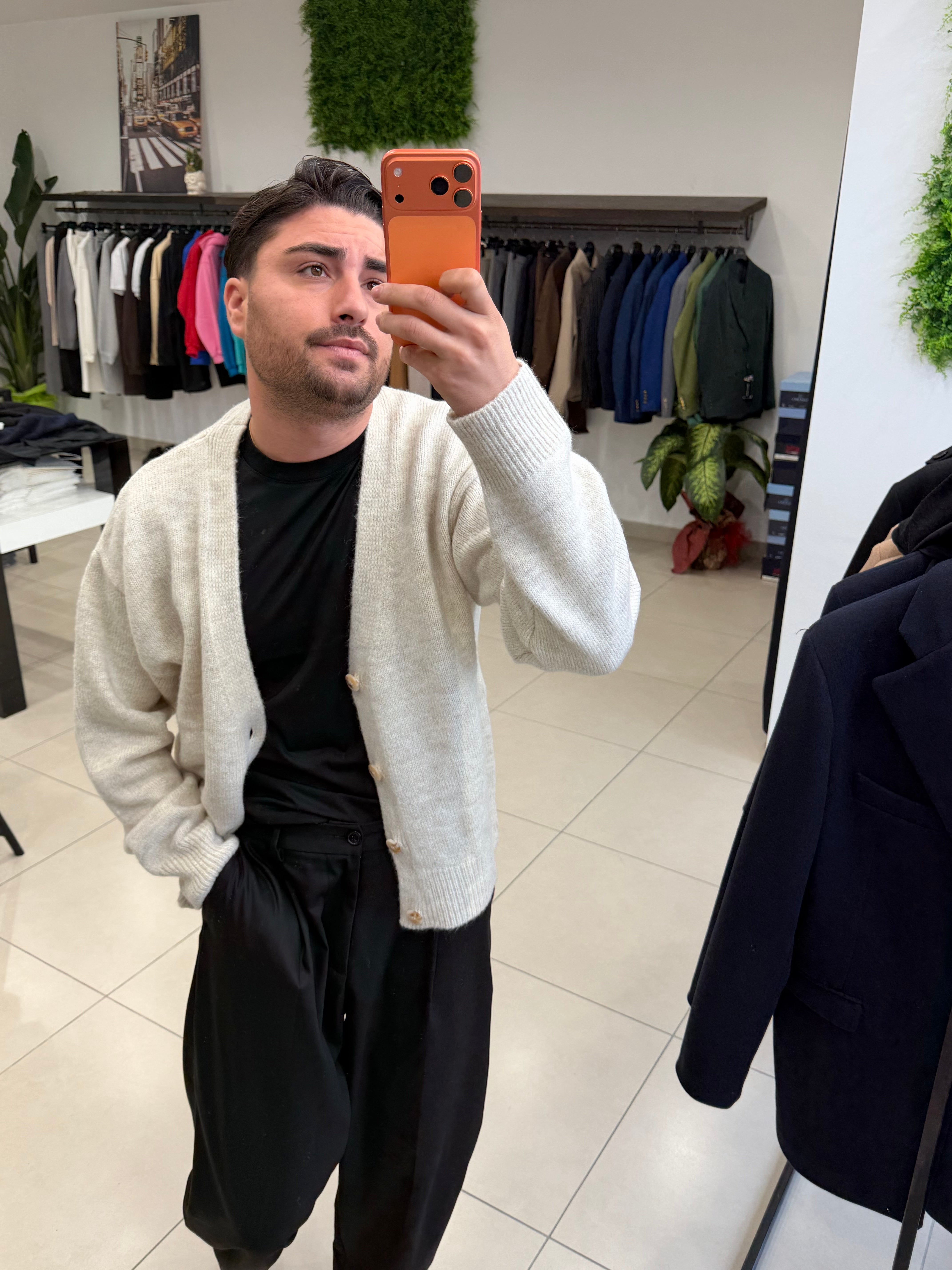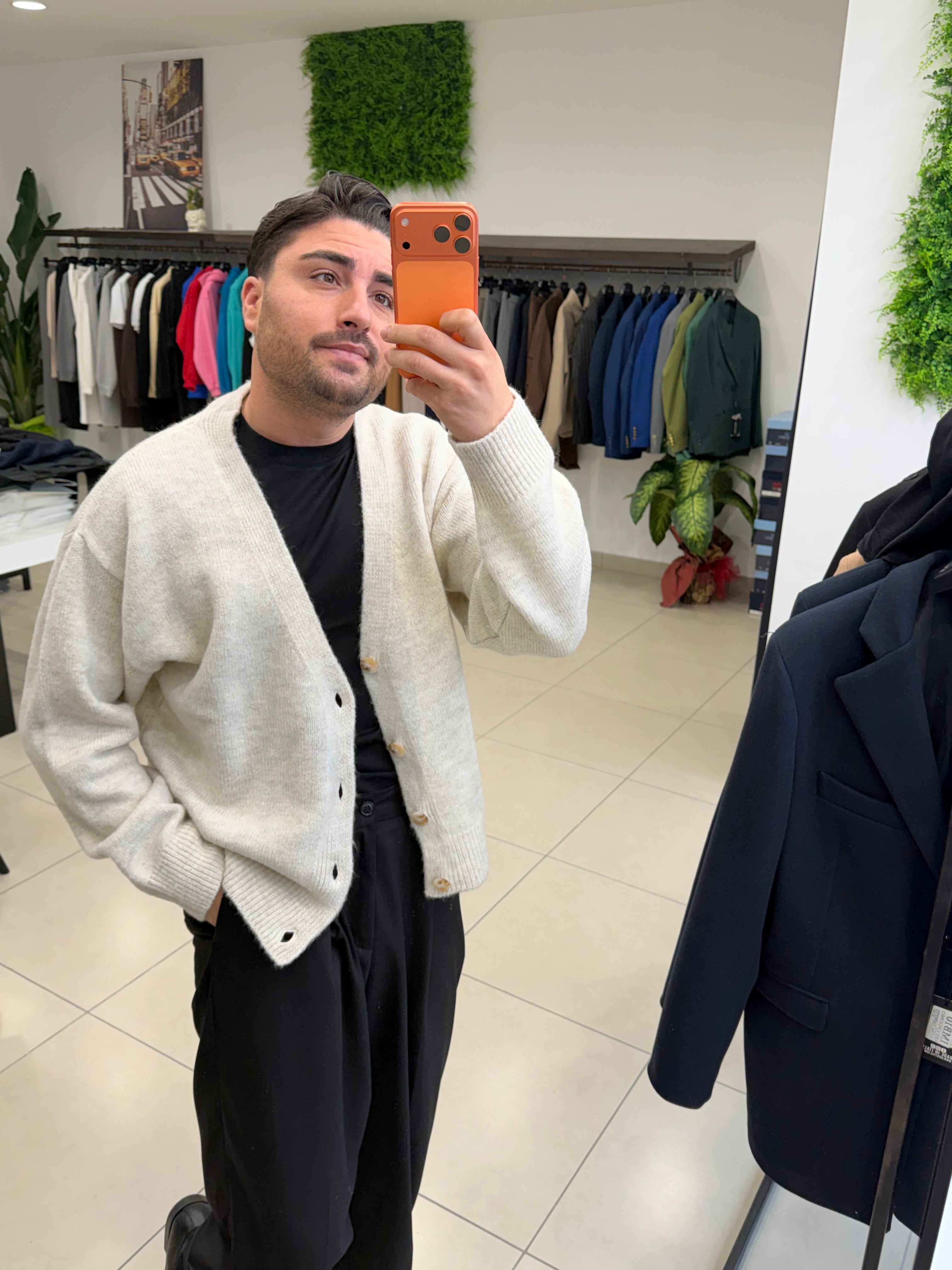 Indossa un cardigan in lana morbido e caldo, perfetto per le giornate più fredde. Realizzato in taglia L per un fit comodo ma elegante. Ideale per rilassarsi a casa o per completare un look casual chic. Aggiungi un tocco di calda eleganza al tuo guardaroba con il nostro cardigan in lana.
