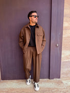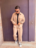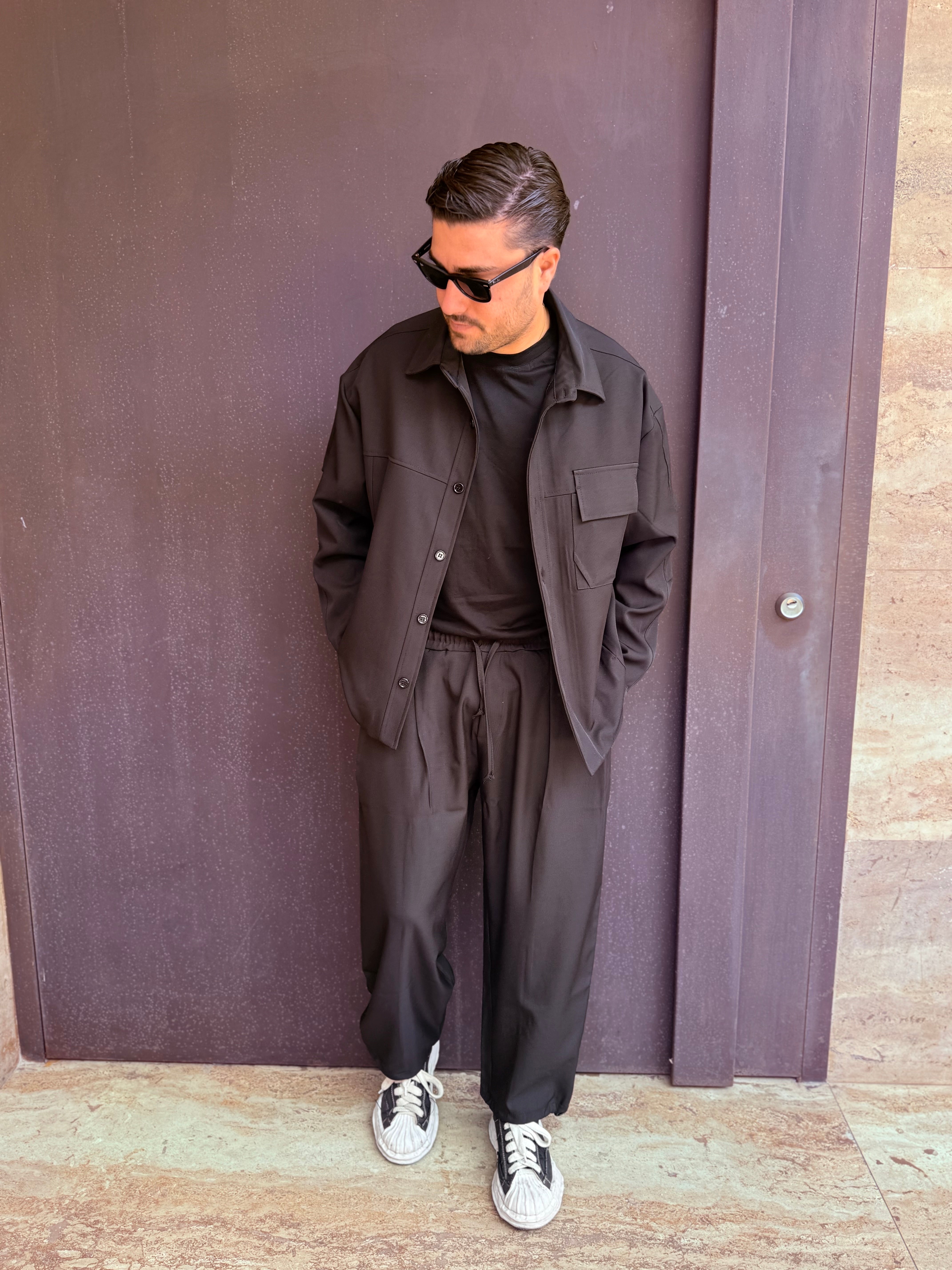 Coordinato japan con Jacket e pantalaccio con vestibilità japan, sto indossando una taglia 50 sono alto 1.80 e peso 80 Kg