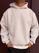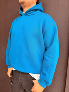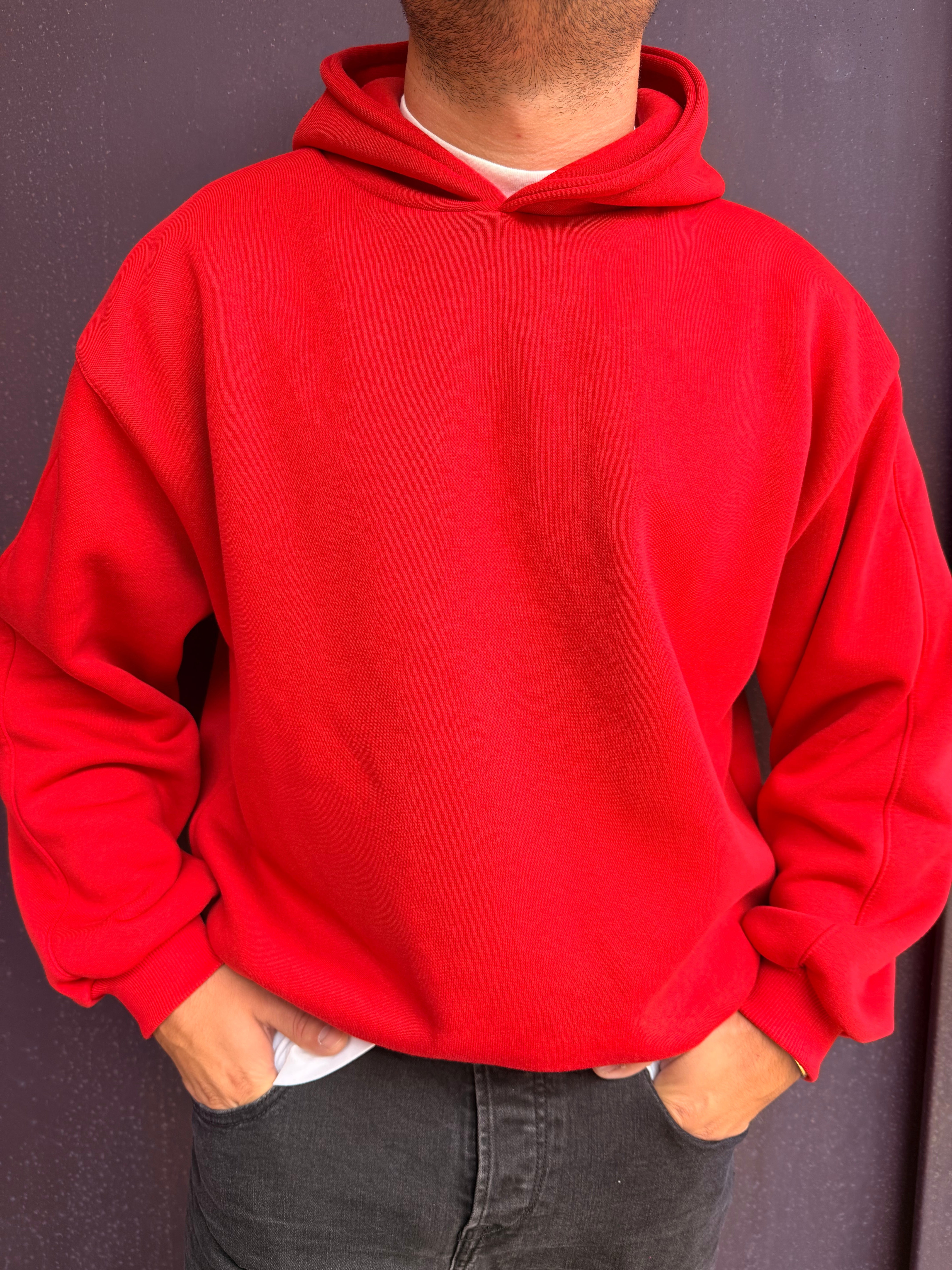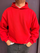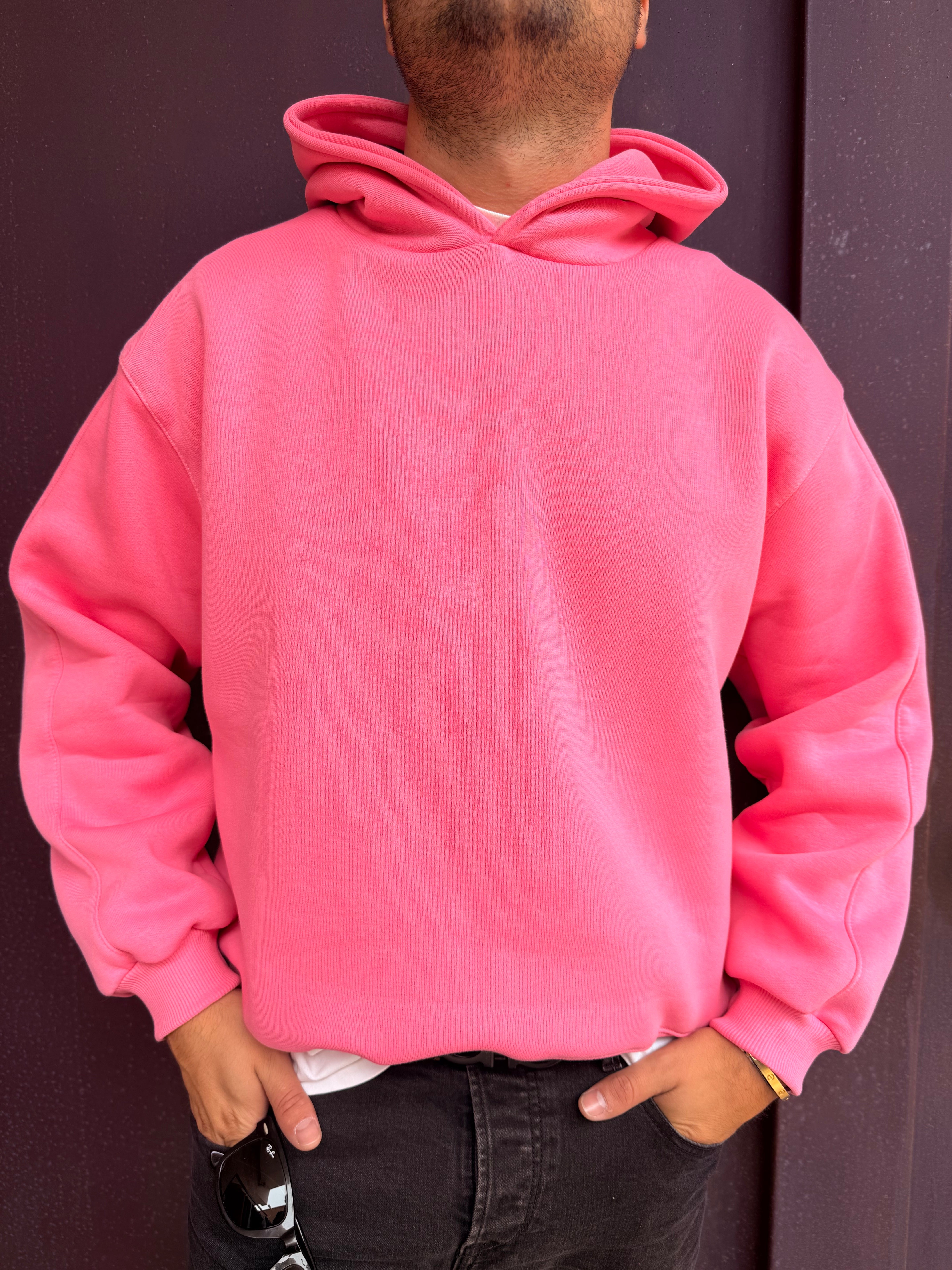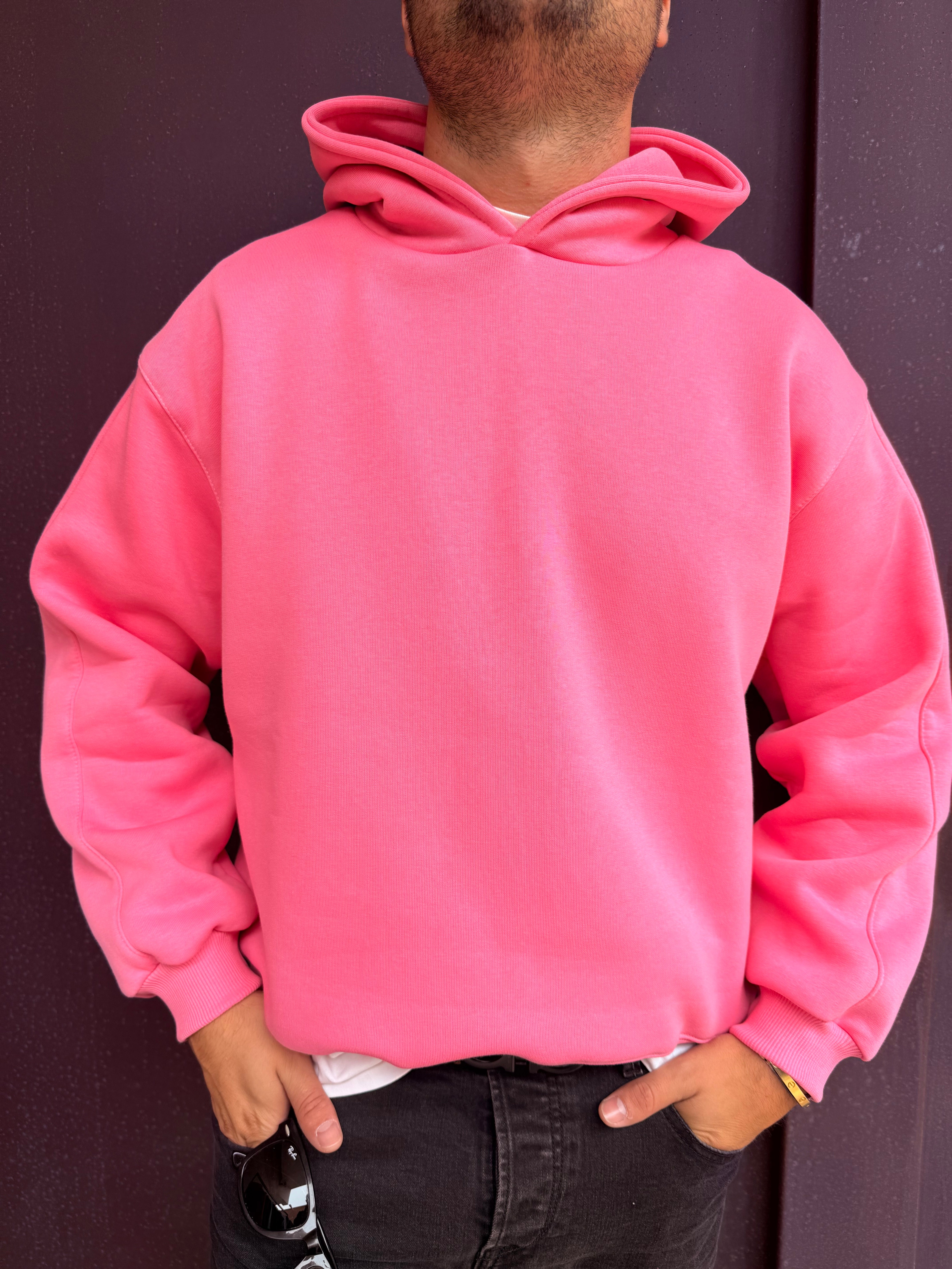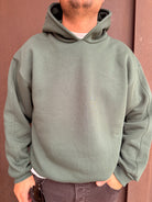 Felpa con cappuccio con spallina bassa vestibilità over, sto indossando una taglia L sono alto 1,80 m e peso 80 kg