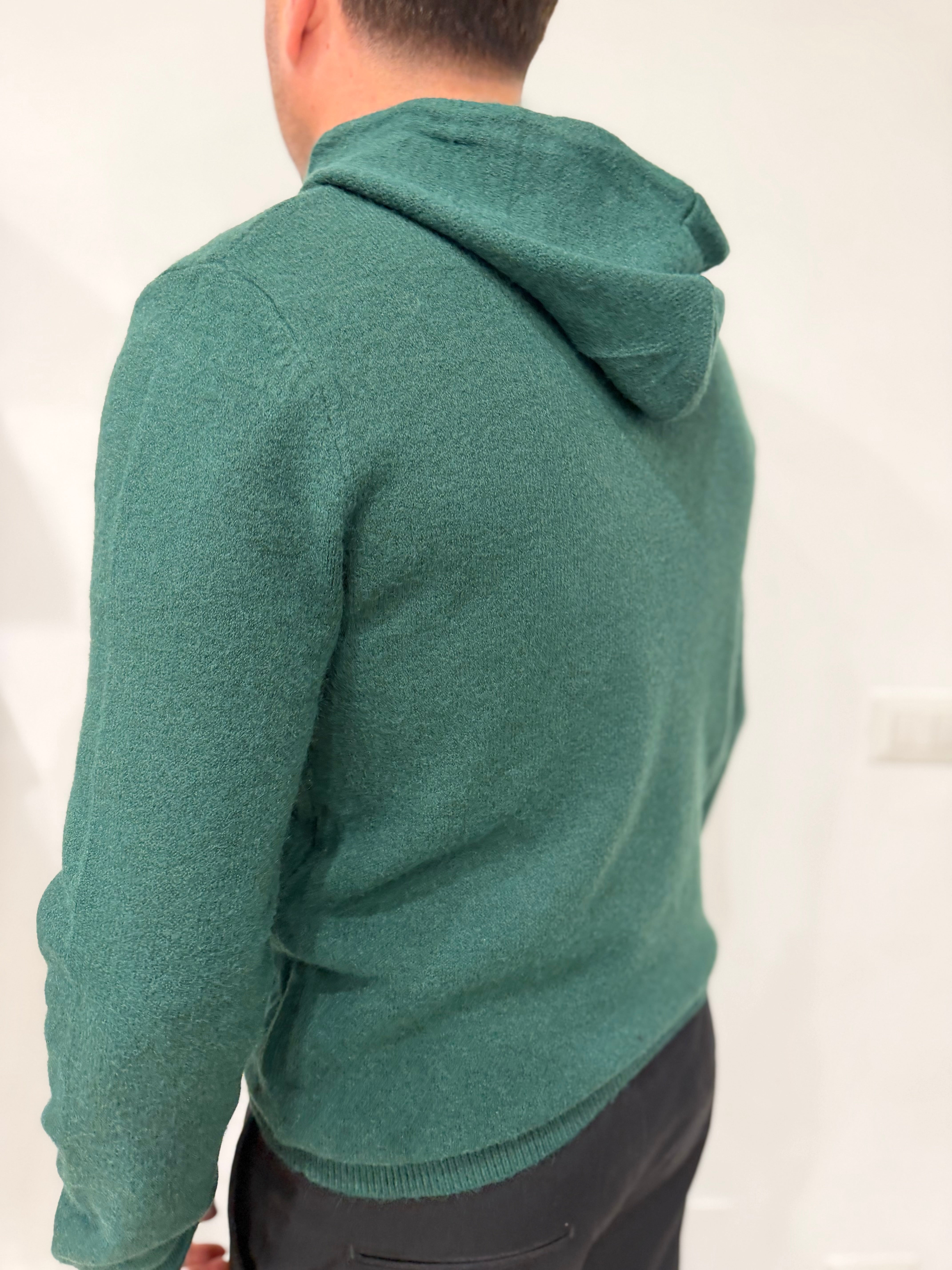 La nostra Felpa in lana con cappuccio è la scelta ideale per chi cerca comfort e stile. Realizzata in morbida lana, questa felpa ti terrà al caldo durante le giornate più fredde. Il cappuccio offre ulteriore protezione, rendendola perfetta per le attività all'aperto. Non rinunciare alla qualità e al comfort con la nostra Felpa in lana.