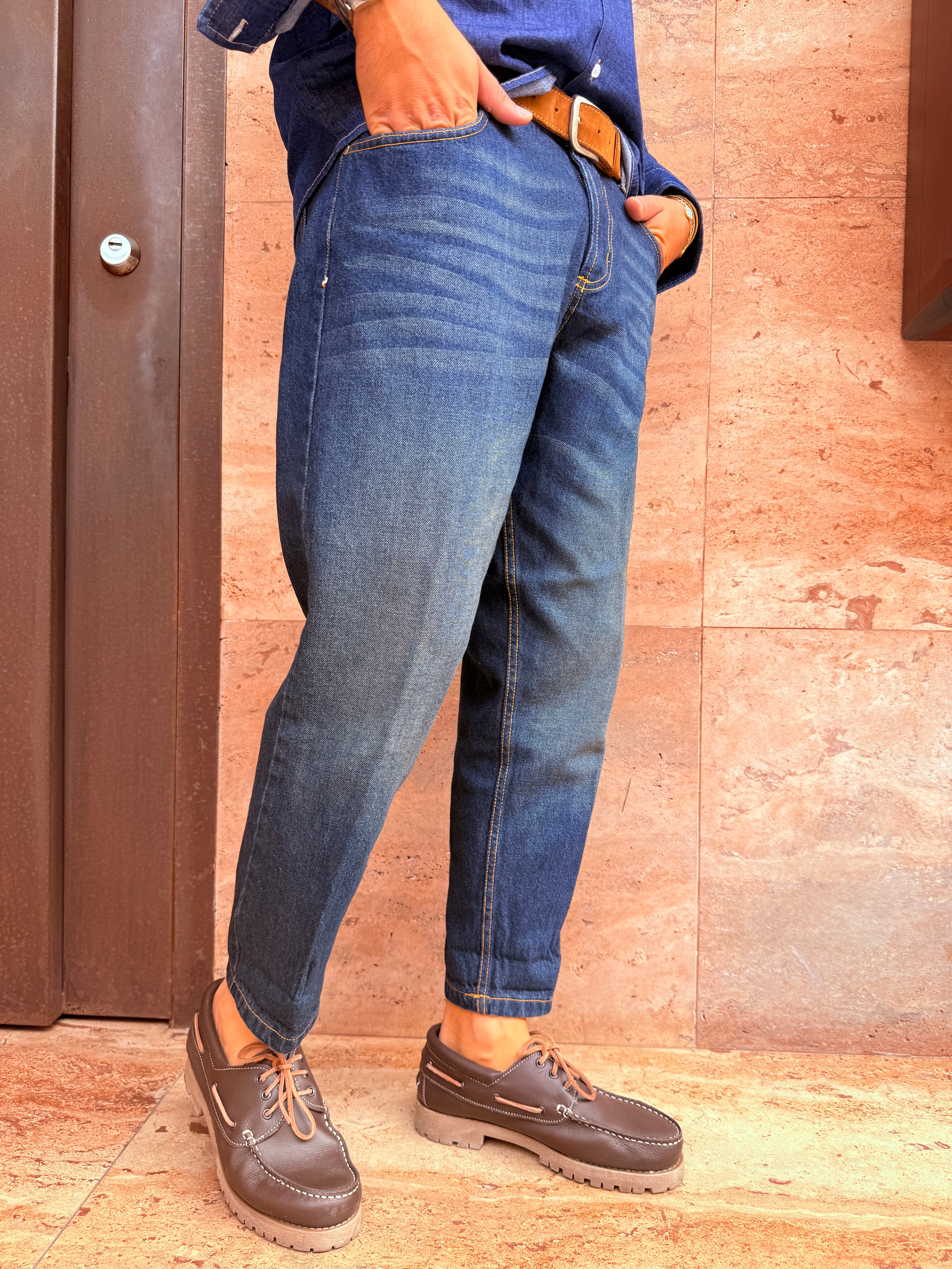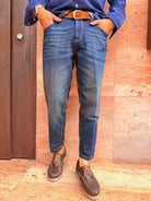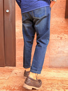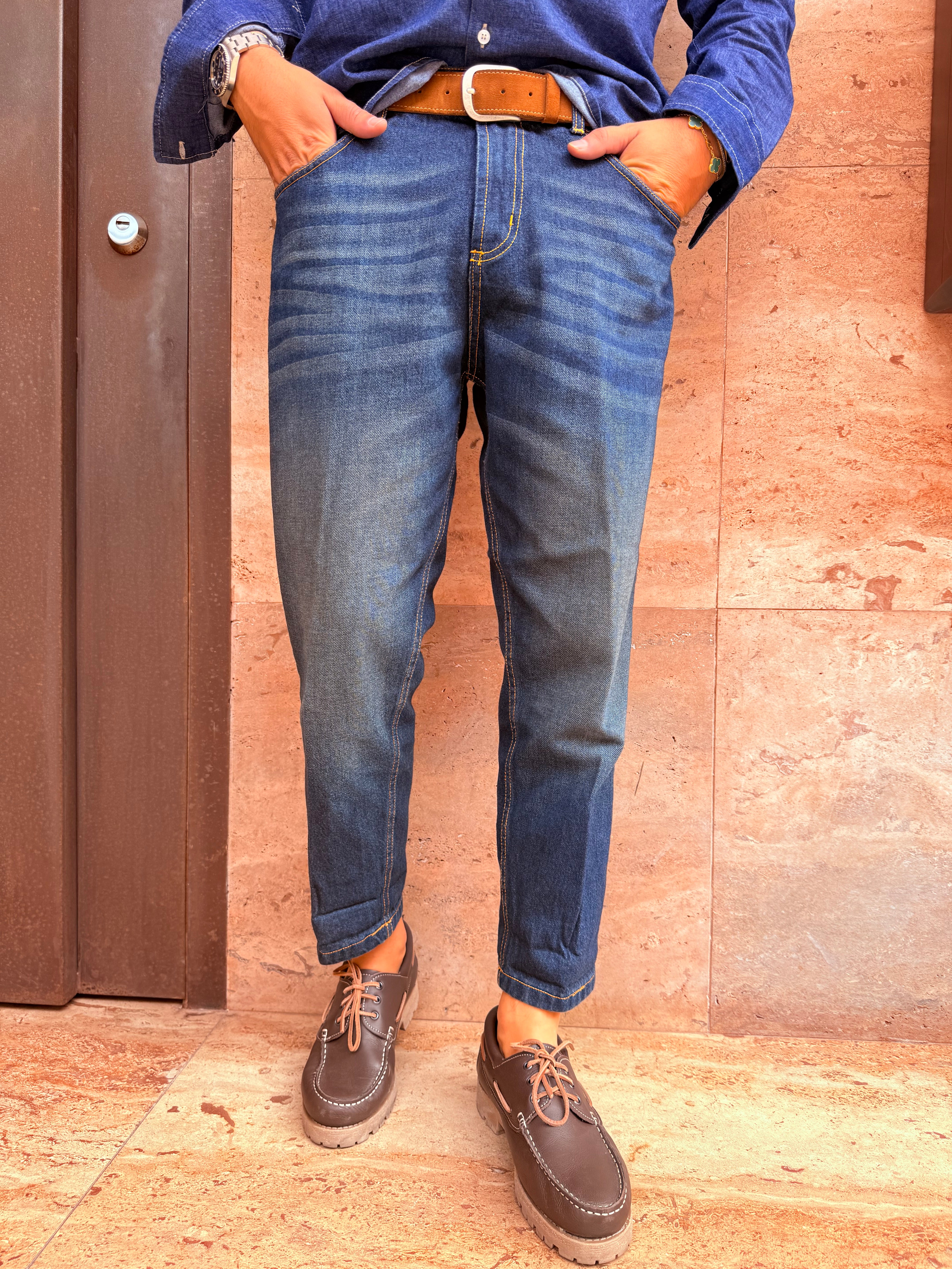 Jeans sfumato, realizzato su tela fissa, cinque tasche