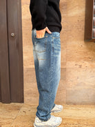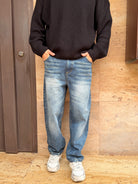 Jeans sfumato realizzato su tela fissa vestibilità top sto indossando una taglia 48 sono alto 1,80 m e peso 80 kg