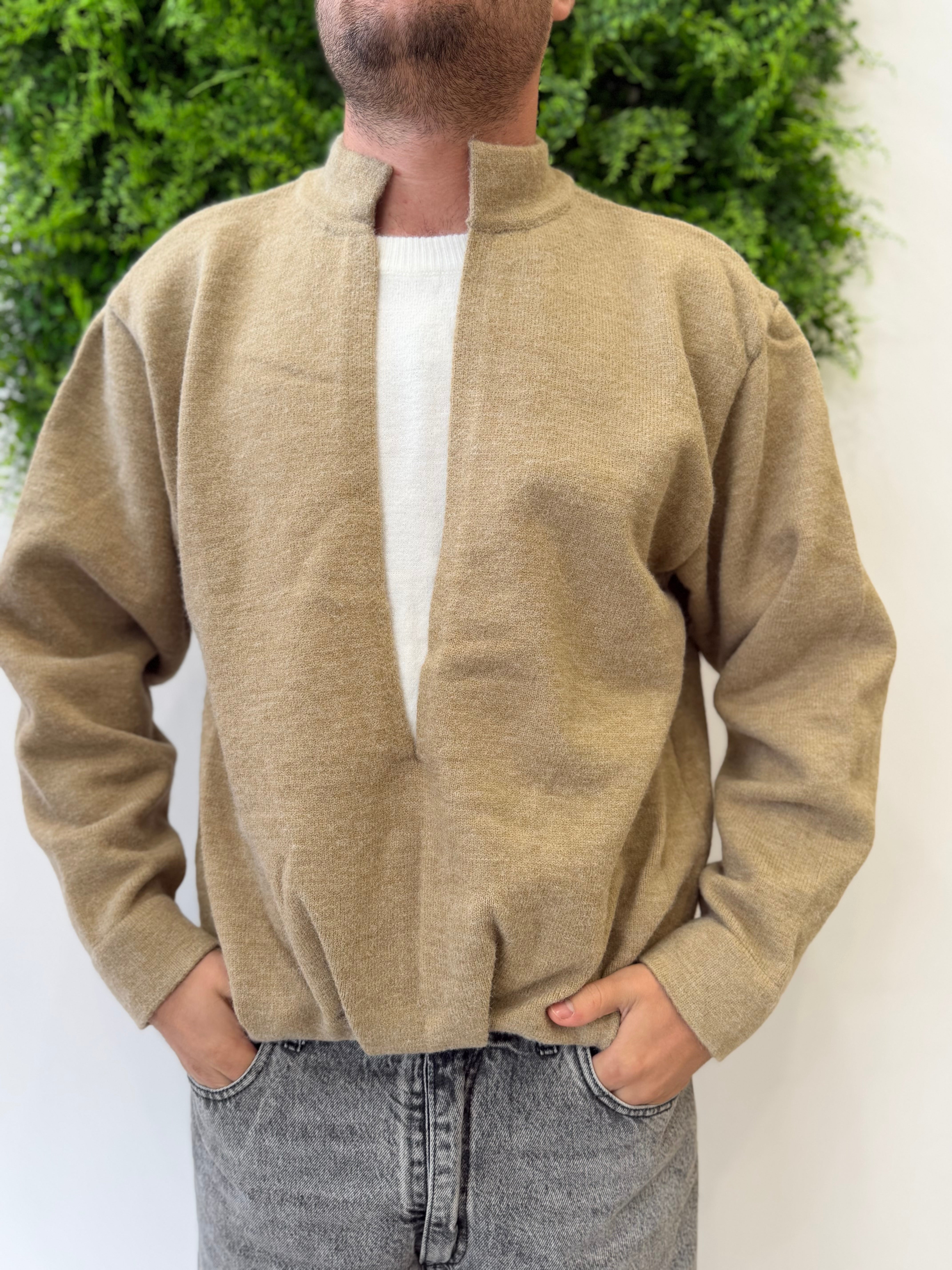 Maglione collo coreano con maglia collo a costine, cropped sto indossando una L, sono alto 1.80 e 80 kg