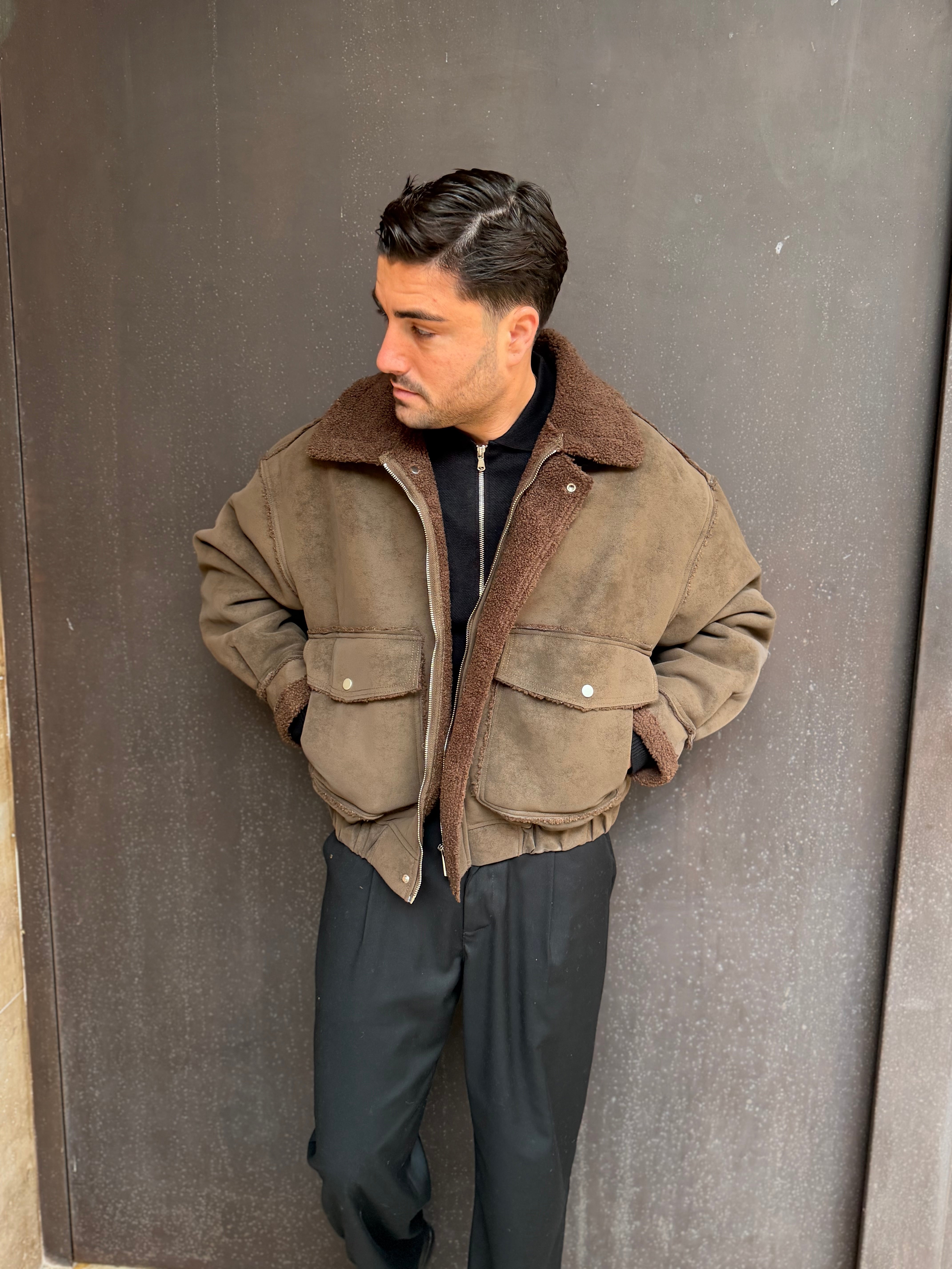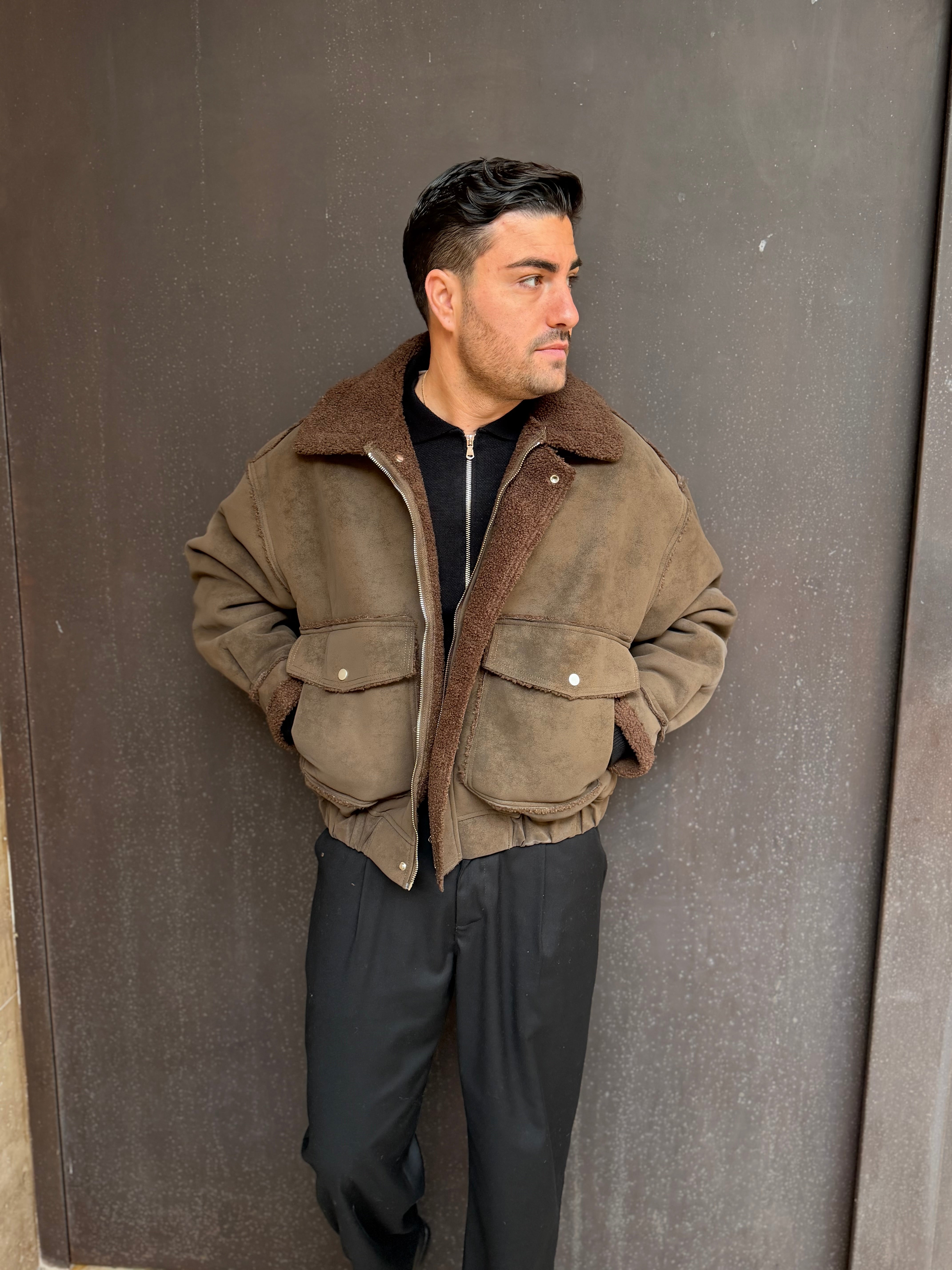 Montone Cooped interamente in tessuto Teddy, con spalla bassa