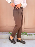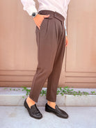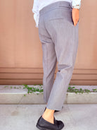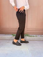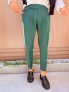 Pantalone vita alta in tessuto fresco lana morbido e caldo, fit avvolgente, sto indossando una taglia 50 sono alto 1.80 per 80 kg