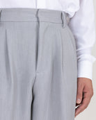 Pantalone su un tessuto poli viscosa alto in vita, fondo morbido, Abbottonatura a scomparsa con passante in vita e doppia pence, sto indossando una taglia 50 sono alto 1,80 m e peso 80 kg